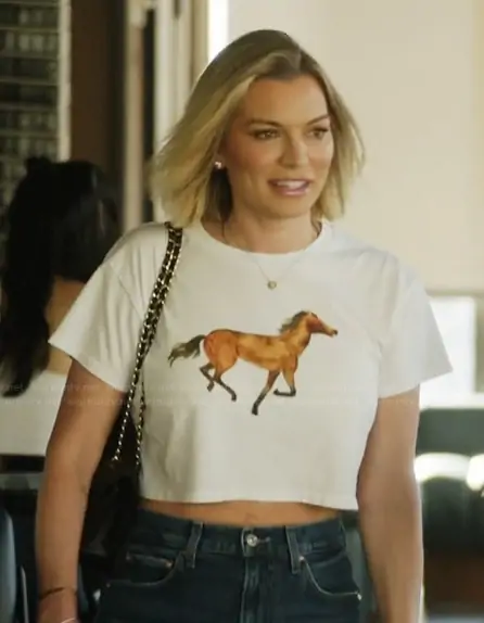 Lindsay Hubbard on Summer House on Bravo was spotted wearing this horse graphic tee on Summer House on episode 'Stoned Cold Truth' (10x02) in Feb 2026. Lindsay's Top is the Horse Crop Top by Polychrome Goods.