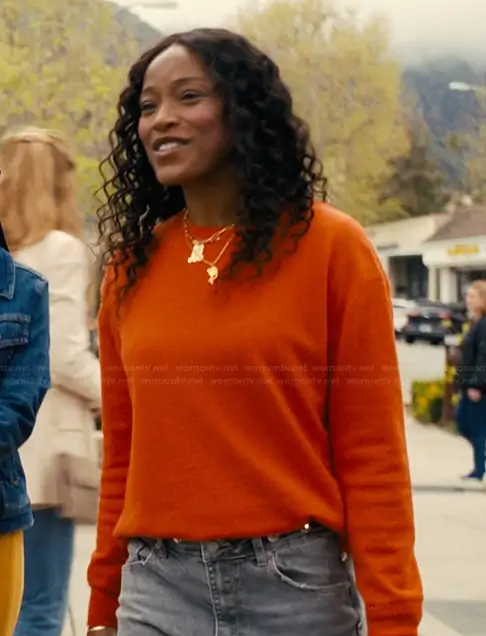Samira Fisher (played by Keke Palmer) on The Burbs on Peacock was spotted wearing this orange sweater on The Burbs on episode 'Mind Your Own Business' (1x02) in Feb 2026. Samira's Sweater is the The Classic Crew in Cashmere by Everlane.