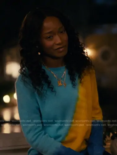 Samira Fisher (played by Keke Palmer) on The Burbs on Peacock was spotted wearing this blue and yellow tie dye sweater on The Burbs on episode 'A Nine on the Tension Scale' (1x04) in Feb 2026. Samira's Sweater is the Tranquility Tie-dyed Cashmere Sweater by The Elder Statesman.