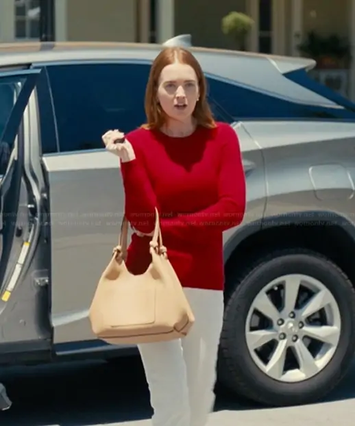 Lauren (played by Kathleen Kenny) on The Burbs on Peacock was spotted wearing this beige leather tote on The Burbs on episode 'Only One Way Out' (1x08) in Feb 2026. 's Bag is the Paula Commuter Large Tote by DKNY.