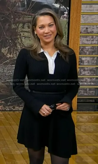 Ginger Zee on Good Morning America on ABC was spotted wearing this black ribbed contrast collar dress on Good Morning America on Feb 16 2026's episode. Ginger's Dress is the Long Sleeve Mini Polo Dress by Peter Som.
