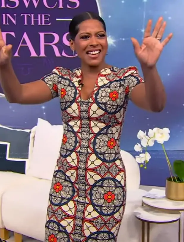 Tamron Hall on Tamron Hall Show on ABC was spotted wearing this stained glass sheath dress on Tamron Hall Show on Feb 16 2026's episode. Tamron's Dress is the Stained Glass Dress by Alexander McQueen.