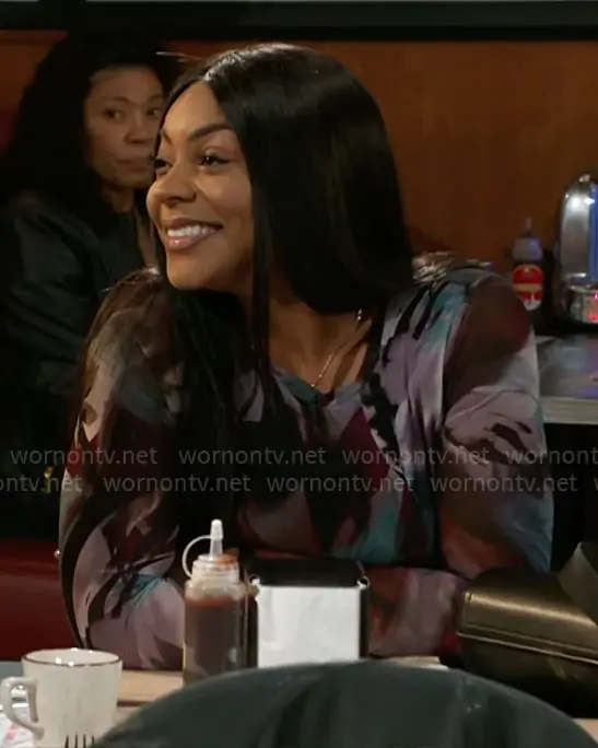 Shanice Johnson (played by Ernestine Johnson) on Beyond the Gates on CBS was spotted wearing this abstract print top on Beyond the Gates on Feb 18 2026's episode. Shanice's Top is the Printed Mesh Long-Sleeve Top by INC International Concepts.