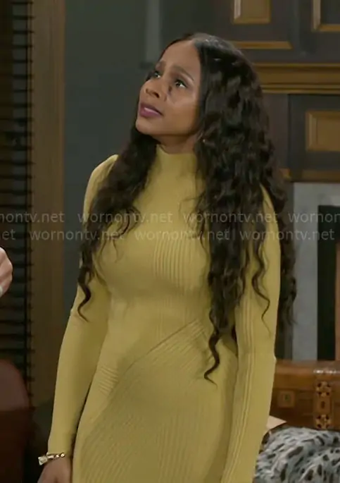 Hayley Lawson (played by Marquita Goings) on Beyond the Gates on CBS was spotted wearing this yellow rib knit midi dress on Beyond the Gates on Feb 18 2026's episode. Hayley's Dress is the Eliz Midi Dress by JLuxlabel.