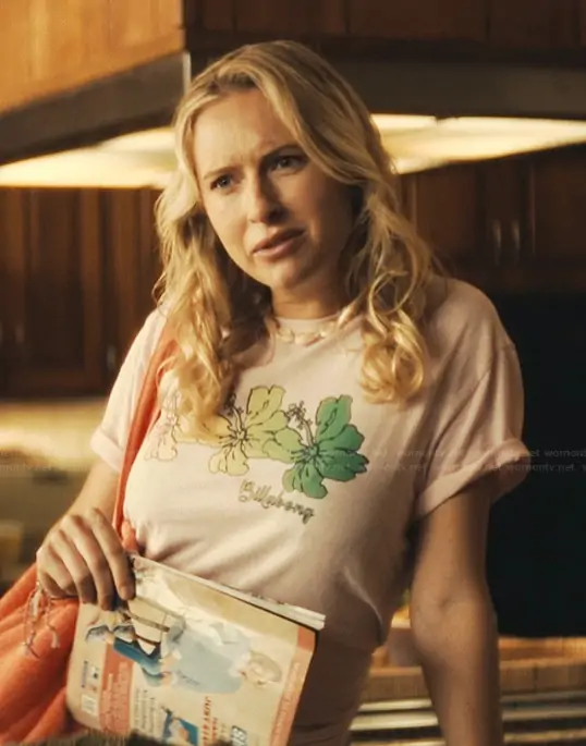 Andrea Kelly (played by Savanna Gann) on His & Hers on Netflix was spotted wearing this pink floral graphic tee on His & Hers on episode 'Episode 6' (1x06) in Jan 2026. 's Top is the Aloha All Day T Shirt by Billabong.