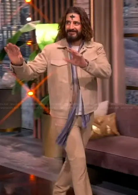 on The View on ABC was spotted wearing this khaki jacket and pants on The View on Feb 20 2026's episode. 's Jacket is the Adriel Trucker by John Varvatos . 's Pants is the Seth Leather Pants by John Varvatos.