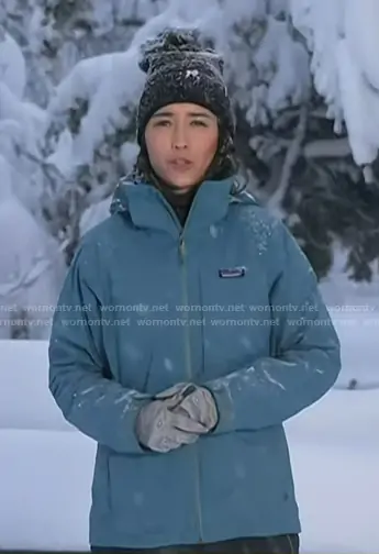 Emilie Ikeda on Today on NBC was spotted wearing this light blue jacket on Today on Feb 23 2026's episode. Emilie's Jacket is the 3-in-1 Snowbelle Jacket by Patagonia.