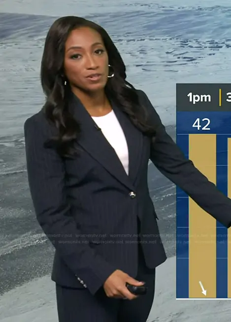 Brittany Bell on Good Morning America on ABC was spotted wearing this navy pinstripe blazer on Good Morning America on Feb 23 2026's episode. Brittany's Blazer is the Pinstripe Blazer by Zara . Brittany's Pants is the Pinstripe Pants by Zara.
