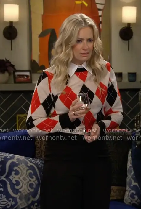 Alice + Olivia Carolann Argyle Pullover worn by Gemma (Beth Behrs) on The Neighborhood