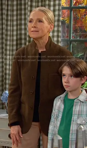 Jennifer Horton (played by Melissa Reeves) on Days of our Lives on Peacock was spotted wearing this olive jacket on Days of our Lives on Oct 06 2025's episode. Jennifer's Coat is the Felted Wool Chore Coat by Buck Mason.