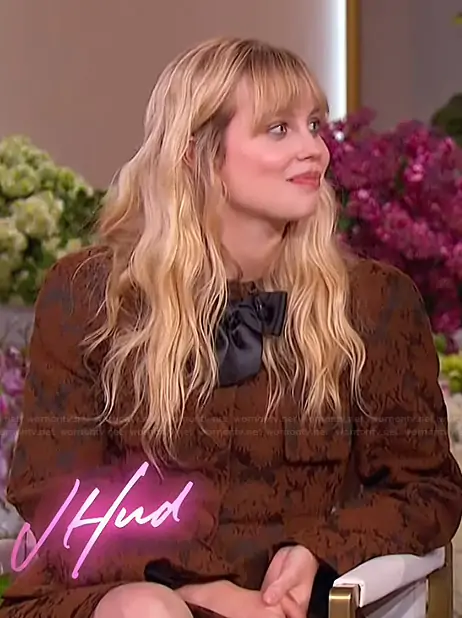 on The Jennifer Hudson Show on FOX was spotted wearing this brown printed mini dress on The Jennifer Hudson Show on Feb 20 2026's episode. 's Dress is the Wool Blend Belted Jacket by Shushu/Tong.
