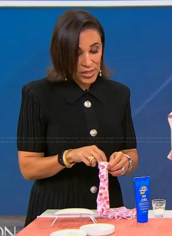 on Tamron Hall Show on ABC was spotted wearing this black button front ribbed dress on Tamron Hall Show on Feb 25 2026's episode. 's Dress is the Flared ribbed-knit minidress by Balmain.
