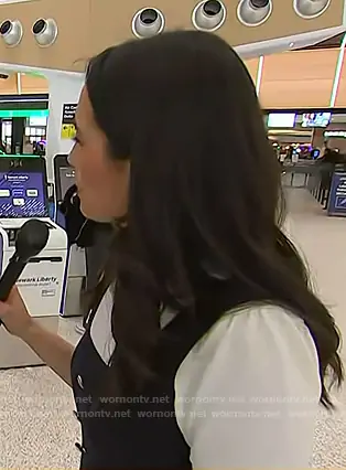 Emilie Ikeda on Today on NBC was spotted wearing this navy layered mini dress on Today on Feb 28 2026's episode. Emilie's Dress is the Twofer Double-Breasted Mini Dress by Maeve.