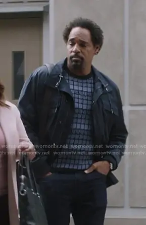 Dr. Ben Warren (played by Jason George) on Greys Anatomy on ABC was spotted wearing this blue check knit sweater on Greys Anatomy on episode '(If You Want It) Do It Yourself' (22x11) in Feb 2026. 's Sweater is the Osburn Crewneck Jacquard Sweater by Ted Baker.