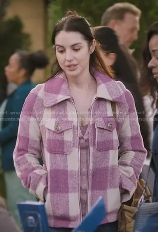 Jules Millin (played by Adelaide Kane) on Greys Anatomy on ABC was spotted wearing this Jules’ pink plaid zip front jacket on Greys Anatomy on episode '(If You Want It) Do It Yourself' (22x11) in Feb 2026. Jules's Jacket is the Plaid Zip Shacket by Avec Les Filles.