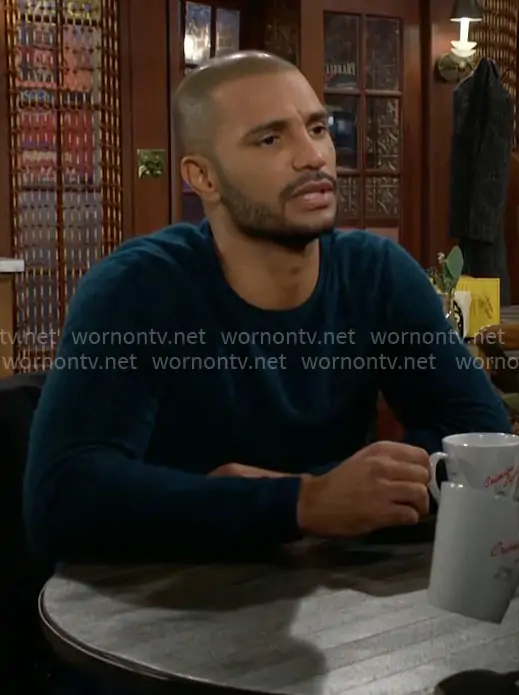Holden Novak (played by Nathan Owens) on The Young and the Restless on CBS was spotted wearing this bottle green sweater on The Young and the Restless on Mar 02 2026's episode. Holden's Sweater is the Baiso Crew Sweater in Sea Green by John Varvatos.