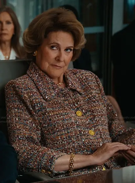 (played by ) on Matlock on CBS was spotted wearing this Red tweed jacket on Matlock on episode 'Tomorrow Is Still Tomorrow' (2x03) in Oct 2025. 's Jacket is the Jia Crop Tweed Jacket by L'Agence.