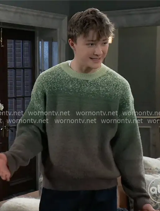 Danny Morgan (played by Asher Jared Antonyzyn) on General Hospital on ABC was spotted wearing this green ombre sweater on General Hospital on Mar 03 2026's episode. 's Sweater is the Boxy Fit Sweater in Green Ombré by Cotton On . 's Shoes is the Superstar Sneakers by Adidas.