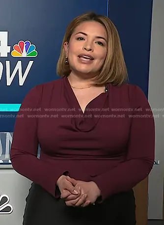 Gilma Avalos on NBC News Daily on NBC was spotted wearing this burgundy cowl neck top on NBC News Daily on Mar 03 2026's episode. Gilma's Top is the Natia Cowlneck Top by Simkhai.