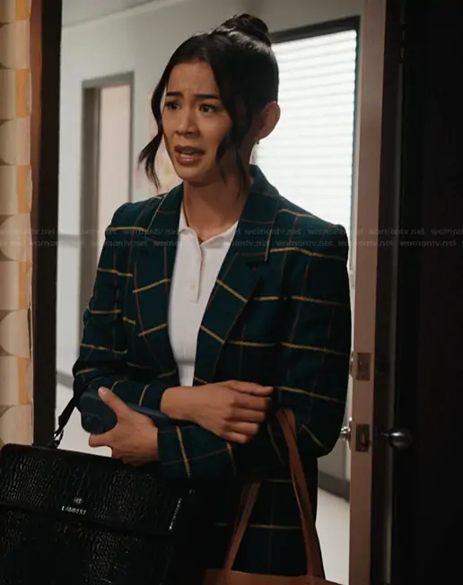 Sarah Franklin (played by Leah Lewis) on Matlock on CBS was spotted wearing this green check print blazer on Matlock on episode 'Piece of My Heart' (2x04) in Nov 2025. Sarah's Blazer is the Madeleine Plaid Blazer by Anine Bing.