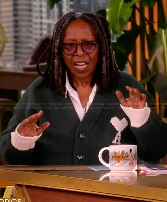 Whoopi Goldberg on The View on ABC was spotted wearing this green cardigan on The View on Mar 04 2026's episode. Whoopi's Sweater is the De Coeur Cardigan Sweater by Ami.