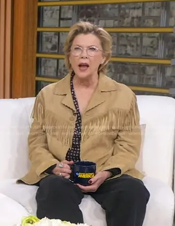 Ralph Lauren Collection Ryland Fringed Suede Jacket worn by Annette Bening on Good Morning America