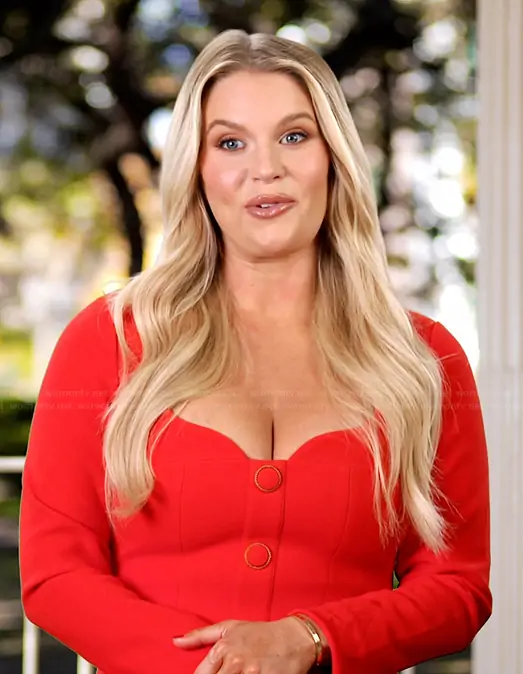 Madison LeCroy on Southern Charm on Bravo TV was spotted wearing this red sweetheart confessional dress on Southern Charm on episode 'About Last Night' (11x14) in Mar 2026. Madison's Dress is the Cameron Mini Dress by Rebecca Vallance.