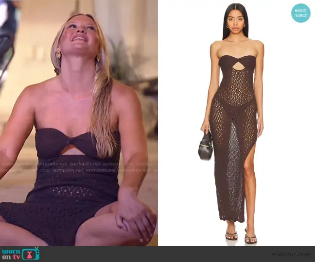 Molly O’Connell on Southern Charm on Bravo TV was spotted wearing this brown crochet knit dress on Southern Charm on episode 'About Last Night' (11x14) in Mar 2026. Molly's Dress is the Marine Maxi Dress by Superdown.