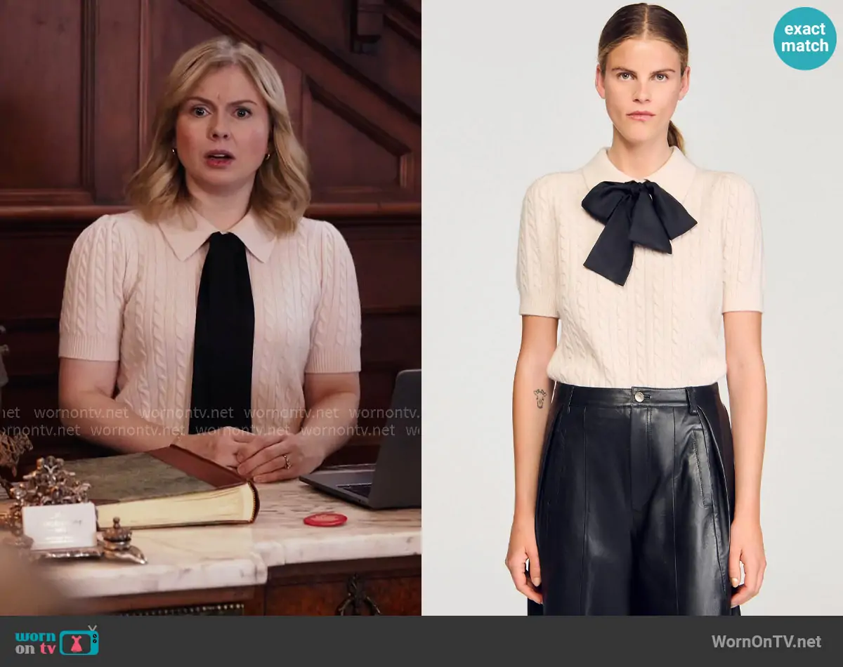 Sam (played by Rose McIver) on Ghosts on CBS was spotted wearing this bow t-shirt on Ghosts on episode 'The List' (5x12) in Mar 2026. Sam's Top is the Zenasw T-shirt by Sophie Schnoor.