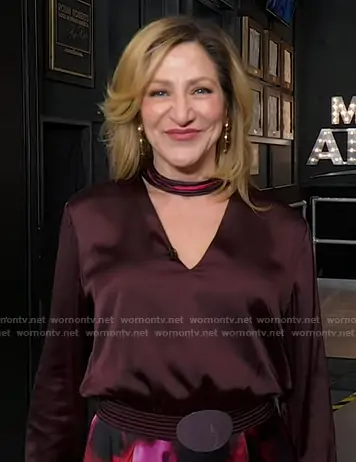 on Good Morning America on ABC was spotted wearing this brown floral v-neck dress on Good Morning America on Mar 05 2026's episode. 's Dress is the Jailyn Floral-print Belted Midi Dress by Silvia Tcherassi.