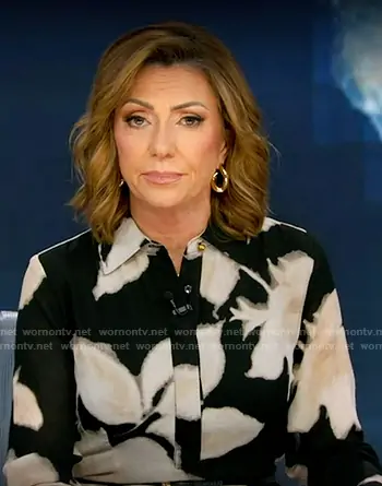 on Good Morning America on ABC was spotted wearing this black floral shirtdress on Good Morning America on Mar 05 2026's episode. 's Dress is the Floral Print Long Sleeve Shirtdress by Donna Karan.