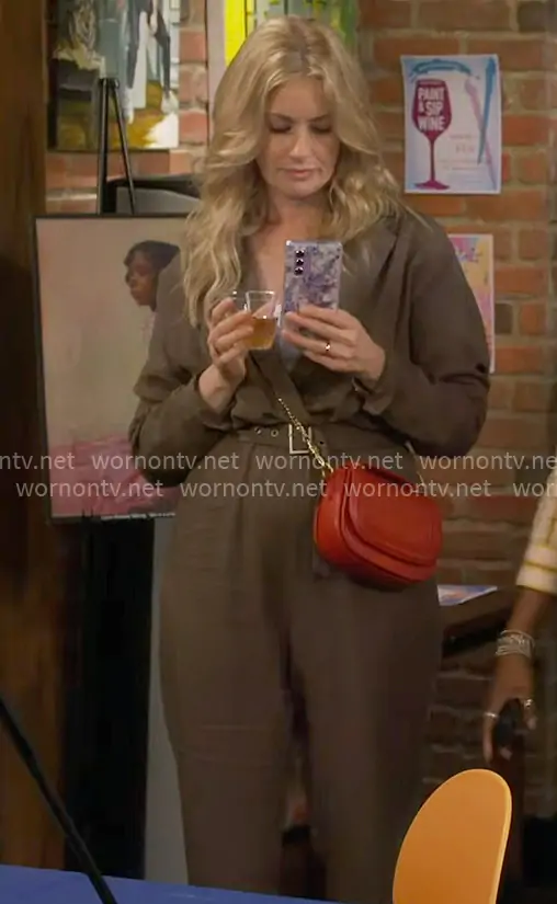 Gemma (played by Beth Behrs) on The Neighborhood on CBS was spotted wearing this olive jumpsuit on The Neighborhood on episode 'Welcome to Baby Proofing' (8x11) in Mar 2026. Gemma's Jumpsuit is the Reed Jumpsuit by L'Academie.
