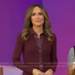 on Good Morning America on ABC was spotted wearing this burgundy leaterh trim ribbed dress on Good Morning America on Mar 09 2026's episode. 's Dress is the Variegated Rib Knit Leather Combo Dress by Toccin.