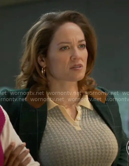 Angie Polaski (played by Erika Christensen) on Will Trent on ABC was spotted wearing this green knit polo top and plaid blazer on Will Trent on episode 'You're Only as Sick as Your Secrets' (4x10) in Mar 2026. Angie's Top is the Chevron Polo Top in Butter Combo by Guest in Residence . Angie's Jacket is the Patch Pocket Wedding Blazer in Forest by Smythe.