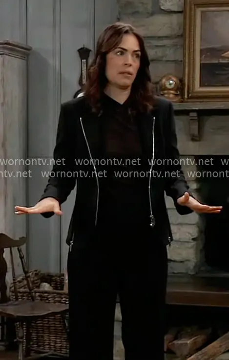 Britt Westbourne (played by Kelly Thiebaud) on General Hospital on ABC was spotted wearing this black jacket with zippers on General Hospital on Mar 11 2026's episode. Britt's Jacket is the La Teste Jacket by Pinko .