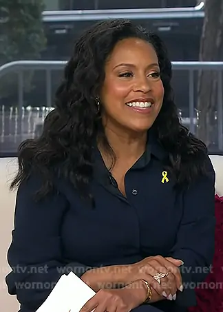 Sheinelle Jones on Today on NBC was spotted wearing this navy polo dress on Today on Mar 11 2026's episode. Sheinelle's Dress is the Long Sleeve Polo Midi Dress in Navy by Victoria Beckham.