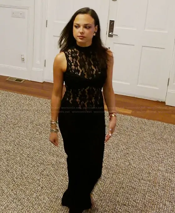 Levi Sebree on Summer House on Bravo was spotted wearing this black lace dress on Summer House on episode 'The Joke's on You' (10x06) in Mar 2026. Levi's Dress is the Addison Dress by Delfi Collective.