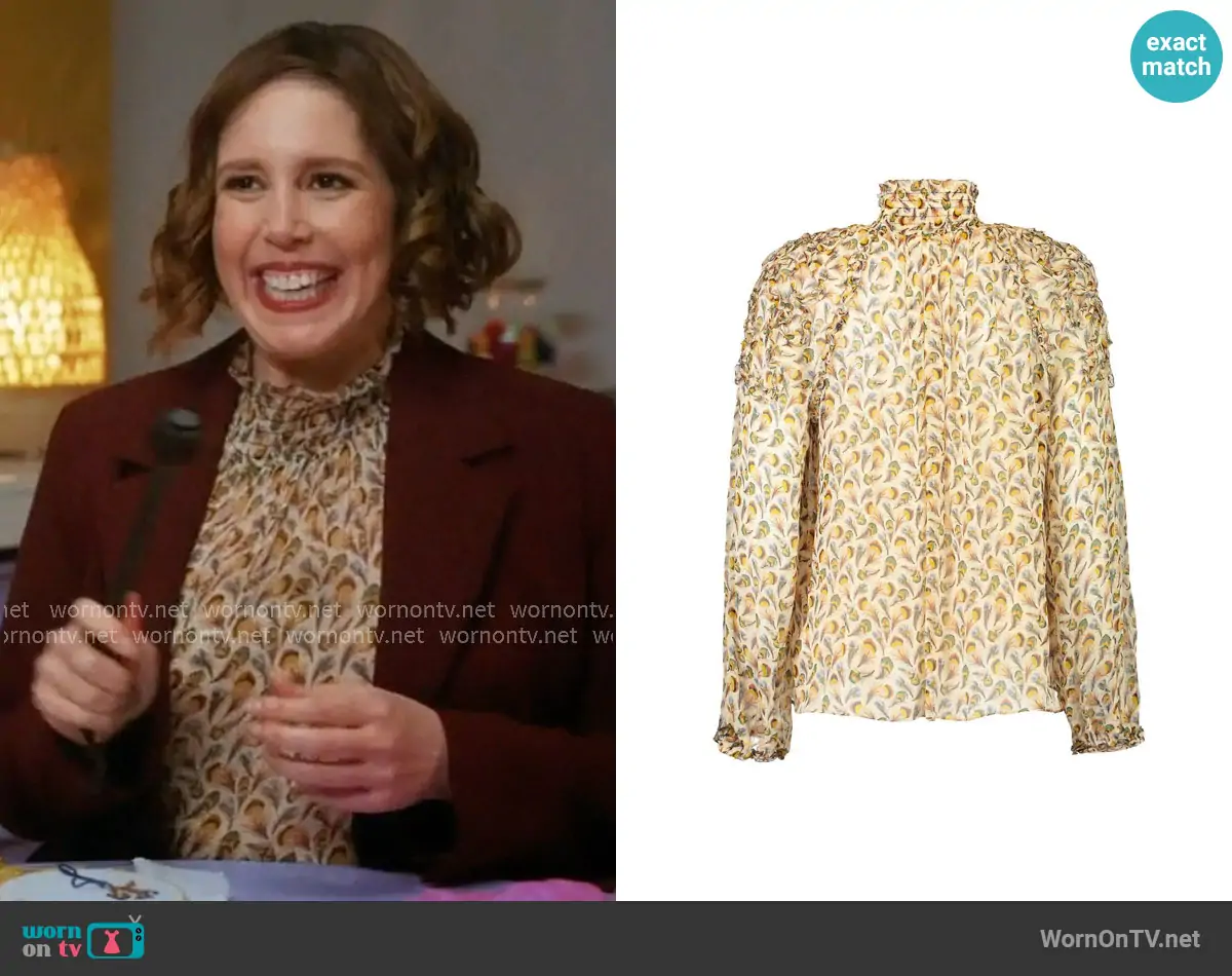 Sibby Wilson (played by Vanessa Bayer) on Scrubs on ABC was spotted wearing this floral mock-neck blouse on Scrubs on episode 'My Poker Face' (1x04) in Mar 2026. Sibby's Top is the Magdalena Blouse by Ulla Johnson.