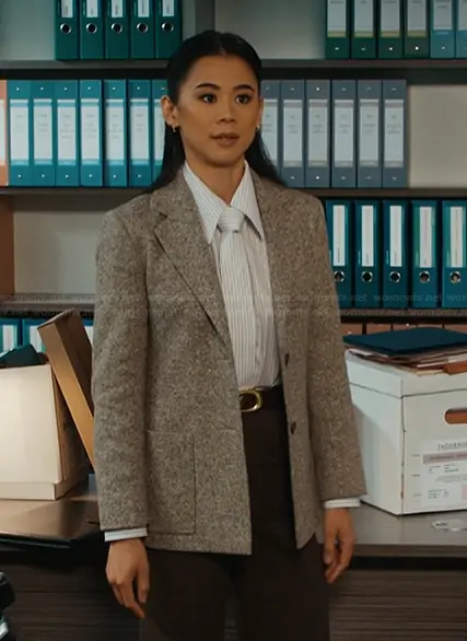 Sarah Franklin (played by Leah Lewis) on Matlock on CBS was spotted wearing this herringbone blazer on Matlock on episode 'Tail Lights' (2x11) in Mar 2026.