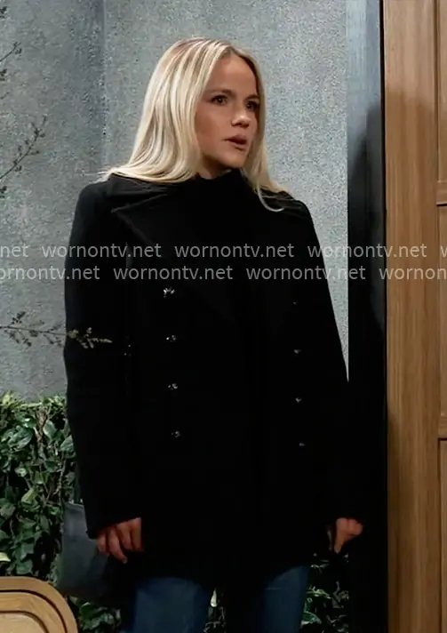 Lulu Spencer (played by Alexa Havins Bruening) on General Hospital on ABC was spotted wearing this black peacoat on General Hospital on Mar 13 2026's episode. Lulu's Coat is the Lily Pea Coat in Black by Reiss .