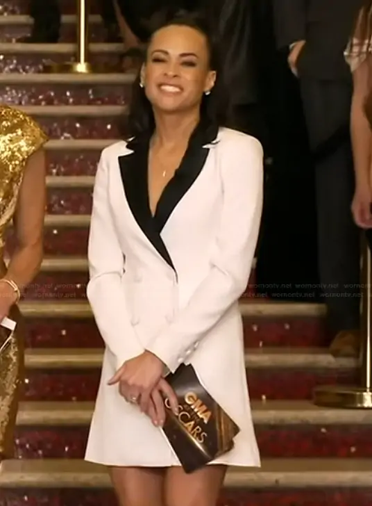 Linsey Davis on Good Morning America on ABC was spotted wearing this white tuxedo dress on Good Morning America on Mar 13 2026's episode. Linsey's Dress is the Kyrie Tuxedo Dress by Alice + Olivia.