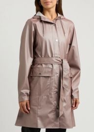 Hoda Kotb on Today on NBC was spotted wearing this pink hooded rain coat on Today on Mar 23 2026's episode. Hoda's Coat is the Curve Jacket W3 in Lilac by Rains.