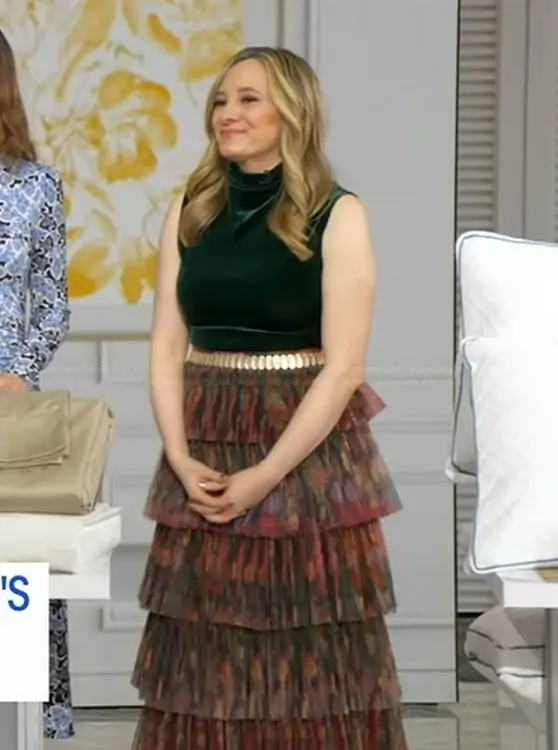 on Good Morning America on ABC was spotted wearing this tiered maxi skirt on Good Morning America on Mar 17 2026's episode. 's Skirt is the Pleated Tiered Maxi Skirt by Hutch.