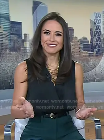 Kaylee Hartung on Today on NBC was spotted wearing this black sleeveless wrap top on Today on Mar 17 2026's episode. Kaylee's Bodysuit is the The Sleeveless Date Thong Bodysuit by Favorite Daughter.