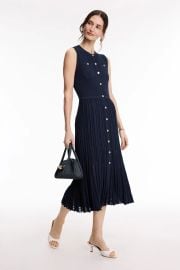 Dr. Tara Narula on Good Morning America on ABC was spotted wearing this navy sleeveless pleated dress on Good Morning America on Mar 18 2026's episode. Tara's Dress is the Sleeveless Knit Midi Dress in Navy by Maje.
