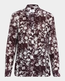 Top: Mathias Floral Silk Button-Down Shirt in Aubergine by Adam Lippes