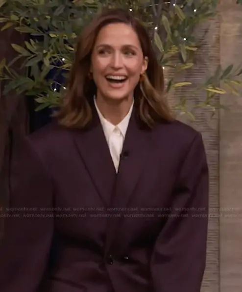 on Live with Kelly and Mark on Disney ABC Home Entertainment was spotted wearing this burgundy blazer on Live with Kelly and Mark on Mar 20 2026's episode. 's Blazer is the double-breasted pinstripe-detail blazer by Magda Butrym.
