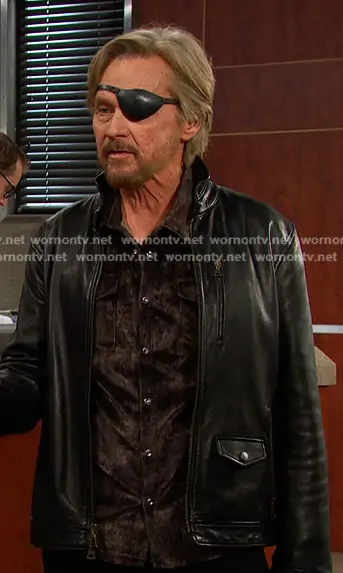 Steve Johnson (played by Stephen Nichols) on Days of our Lives on Peacock was spotted wearing this brown velvet shirt and leather jacket on Days of our Lives on Mar 20 2026's episode. 's Shirt is the Ferentino Shirt in Chocolate by John Varvatos . 's Jacket is the York Slim Fit Leather Jacket in Black by John Varvatos.