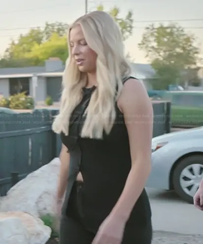 Mayci Neeley on The Secret Lives of Mormon Wives on Hulu was spotted wearing this black bow front vest on The Secret Lives of Mormon Wives on episode 'The Book of True Colors' (4x03) in Mar 2026. Mayci's Top is the Milani Bow Front Sweater Tank by Petal and Pup.