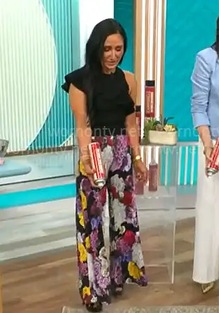 Elizabeth Werner on CBS Mornings on CBS was spotted wearing this black ruffled top and floral pants on CBS Mornings on Mar 22 2026's episode. Elizabeth's Top is the Malia Diagonal-Ruffle Jersey Top by A.L.C. . Elizabeth's Pants is the Floral Wide Leg Pants by Dolce & Gabbana .